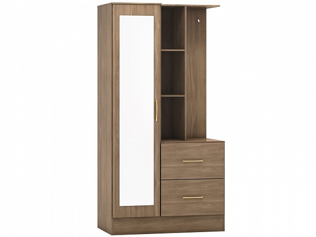 Nevada mirrored open shelf wardrobe - Rustic oak effect