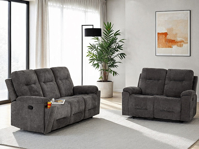 guilford 3+2 recliners size 3 seater w2050mm x d940mm-1650mm x h1040mm, 2 seater w1500mm x d940mm-1650mm x h1040mm in grey fabric